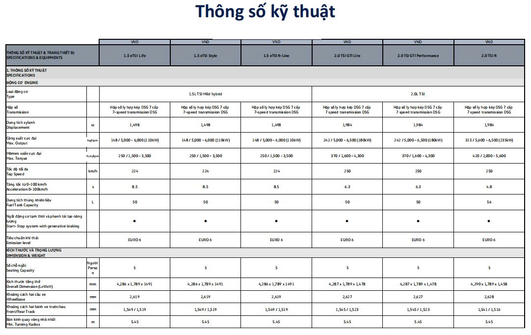 | Golf 1.5 eTSI Life | 798.000.000 VNĐ |