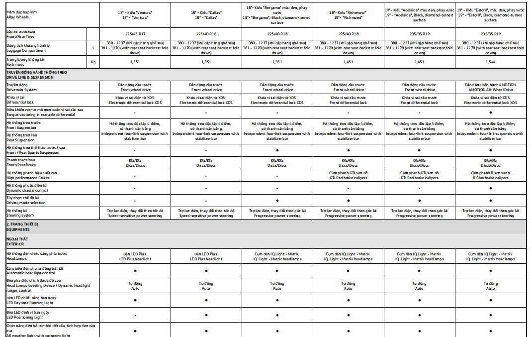 | Golf 1.5 eTSI R-Line | 998.000.000 VNĐ |