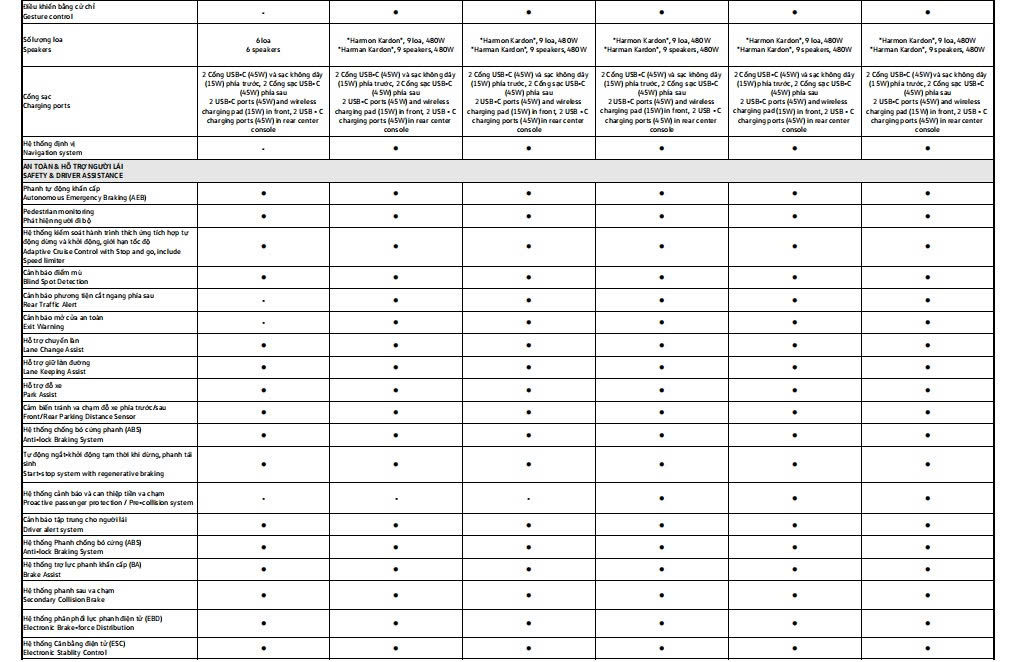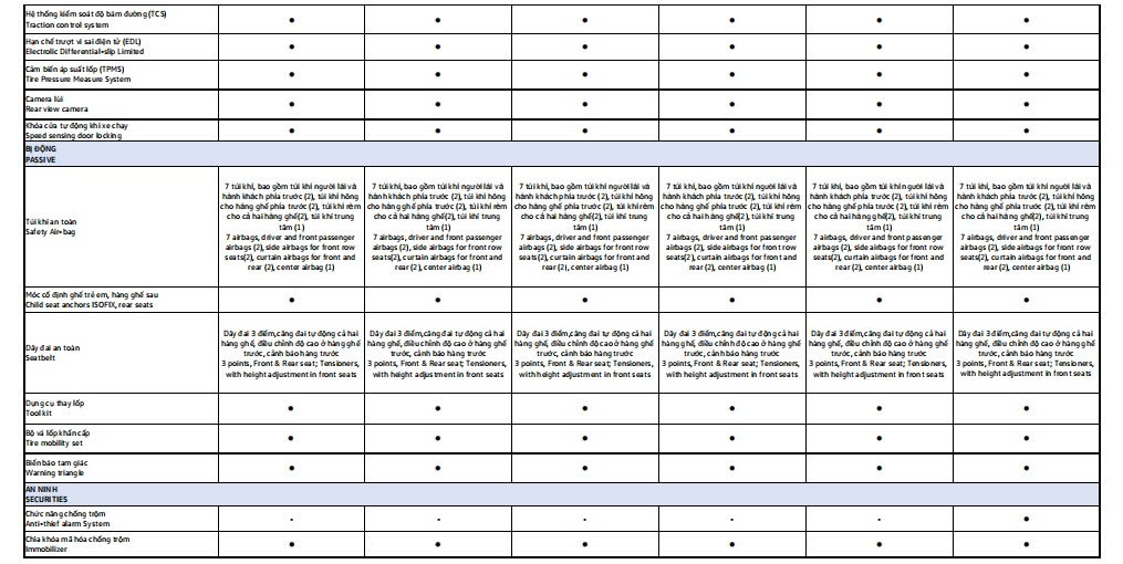 Các công nghệ an toàn chủ động giúp xe duy trì sự ổn định, hỗ trợ phanh và kiểm soát thân xe trong những tình huống cần thiết. Song song đó, hệ thống an toàn bị động được thiết kế để bảo vệ tối đa cho hành khách trong khoang xe, mang lại sự an tâm cho cả người lái lẫn gia đình.